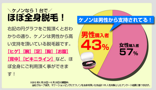 男性の購入者が4割もいる脱毛器ランキングでもダントツ人気の家庭用脱毛器ケノン。モテ男になるには脱毛の時代です。アットコスメ、楽天の脱毛で連続1位の記録の人気。